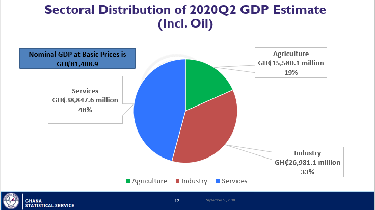 The services sector which makes up 48 percent witnessed a growth rate of negative 2.6 percent whiles the industry sector which makes up 33 percent of all goods and services produced saw a negative growth rate of 5.7 percent.