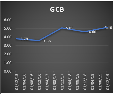 Ecobank Ghana Ltd performance has been in positive territories. An investor who purchased the banking giant’s shares in December 2015 has returned 15.41% by December 2019 in capital returns. Within the period with some careful attention, investors would have earned higher. For example, investors who bought Ecobank Ghana shares in January 2018 earned 37% by June, 2018. GCB in the same period earned 33% whiles SCB earned 32%. Though holding on to these stocks throughout the period from 2015 to 2019 would have recorded minimal returns.