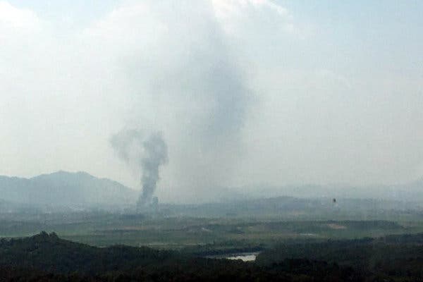 A South Korean military source told Reuters that there had been signs North Korea was going ahead with the demolition earlier in the day, and South Korean military officials watched live surveillance imagery as the building was blown up.